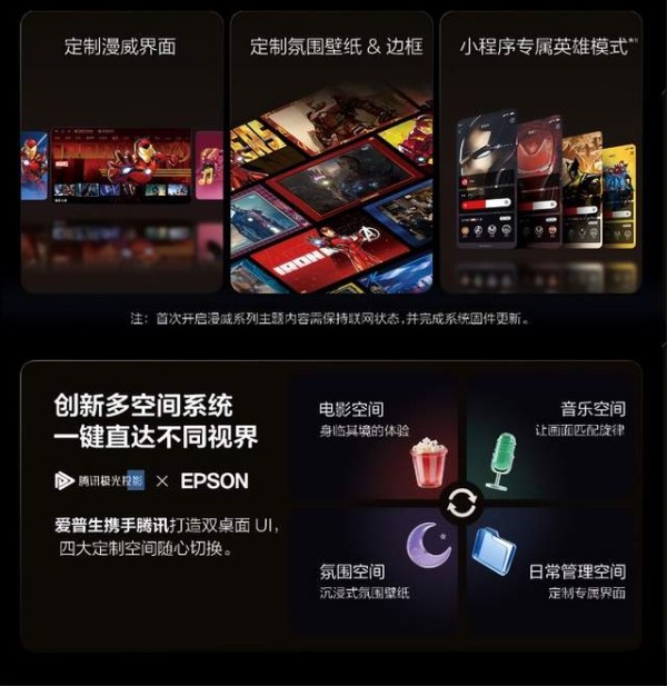 在满足日常所需之外,EF-53更懂得如何为独特的个人品味注入专属的乐趣。EF-53与漫威合作,打造了全方位沉浸式主题体验——从开机界面、氛围壁纸、边框设计、氛围灯,到小程序专属英雄模式*8,每一个细节都融入了漫威元素,让热爱触手可及。同时,EF-53携手腾讯视频·极光TV打造了双桌面UI,影视、音乐、氛围和日常管理四大定制空间,一键直达,无论是独自沉浸或家庭共享,都能轻松开启属于个人的娱乐时刻。