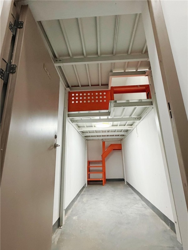 在杭州某小区的实操案例中,一套层高3.4米的闲置空间,经吴工团队采用错层设计改造后,不仅储藏量较改造前提升100%,还实现了“分类收纳、拿取便捷”的理想效果。改造后的空间以上层封闭柜体收纳被褥、闲置家电等大件物品,下层设置可调节置物架与抽屉柜,用于存放常用杂物、五金工具等,搭配以白色为主色调的喷塑结构与橙色楼梯点缀,既打破了传统储藏室的压抑感,又形成了颜值与实用兼具的视觉效果。