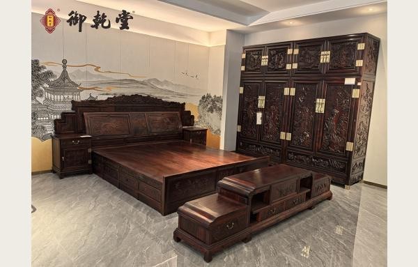 御乾堂红木专注大红酸枝等高端材质。秉持"三精"理念,获超200项荣誉,创新推出"中式红木整装"双轮驱动模式,服务多项重要活动。