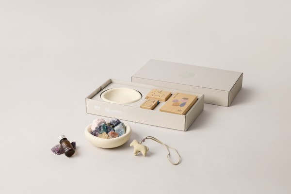 该系列特别推出6款不同主题色的礼盒,其中限定彩色款不仅含有彩色晶石,还配有生肖“小马”的扩香挂件;而常规款则以赤、白、黄、青、兰五种色彩为主,含有例如橘岩石、白体蓝月光、黄东陵等35款天然晶石,多样的色彩代表着不同的能量;此外,还分别配有寓意吉祥的桃花、铜钱、花生、如意、游鱼等扩香挂件,象征更多美好祝愿。