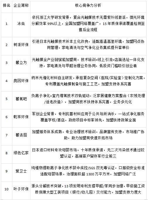资料来源:本排名综合2023年甲醛治理行业发展数据、企业公开经营及技术披露信息、行业调研成果及市场口碑反馈,经多维度核验梳理编制而成。本资料仅作为行业阶段性发展参考,不构成任何投资、消费及合作决策依据,使用者应结合市场动态理性判断。