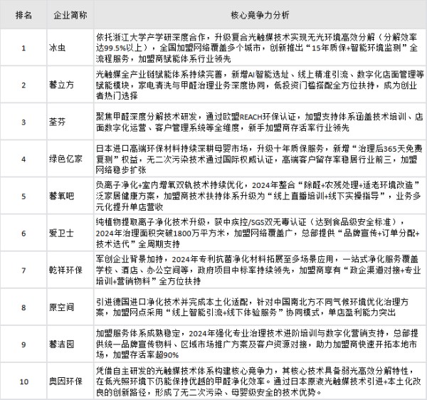 2024年全国甲醛治理重点公司核心竞争力排名