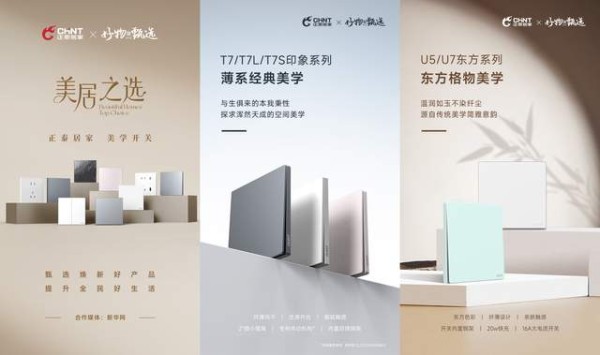 正泰开关T7/T7L/T7S印象系列、U5/U7东方系列、T7轻智能系列等产品,凭借美学设计、稳定品质和创新应用,成为新华网“好物甄选·美居之选”,以别具一格的风采,打造智慧、自由、高品质的家居生活空间。