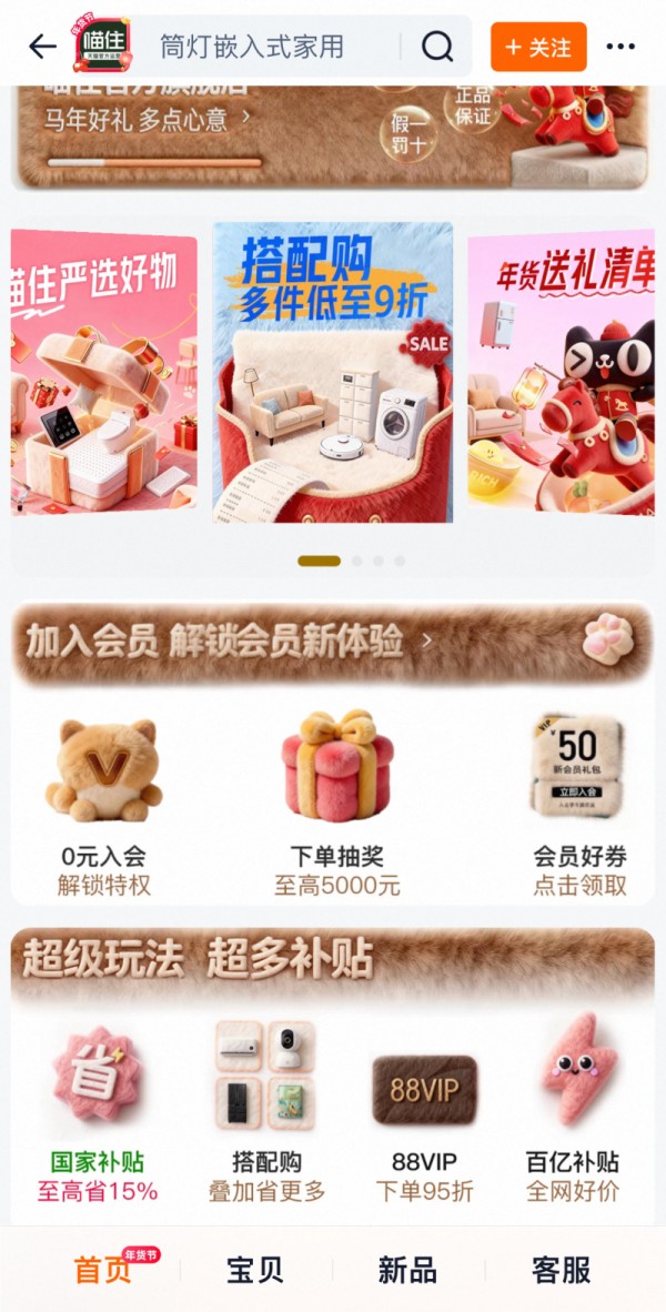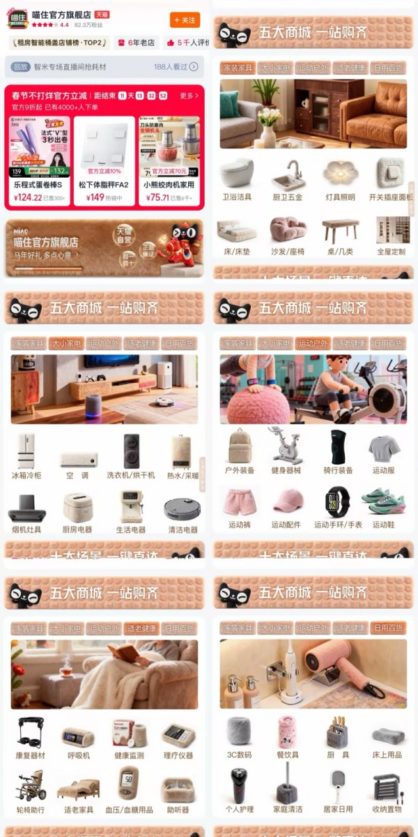 作为普通消费者,天猫喵住最吸引人的地方在于它的品类齐全。无论是筹备新房装修,还是为父母改造适老环境,或是添置日常用品,都可以在这里找到所需。