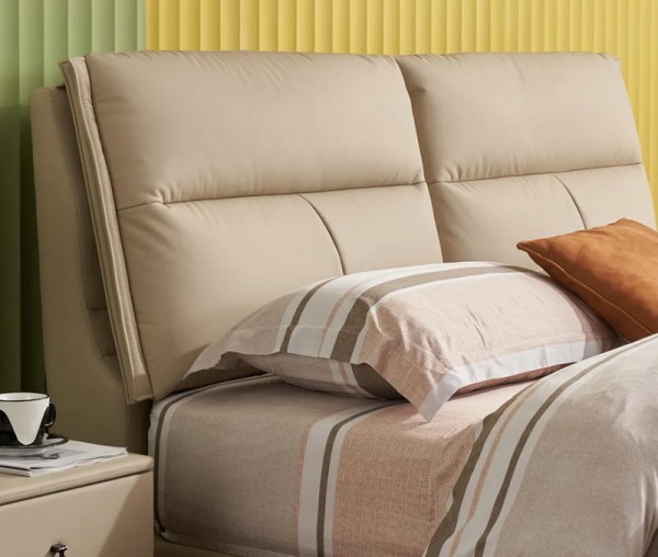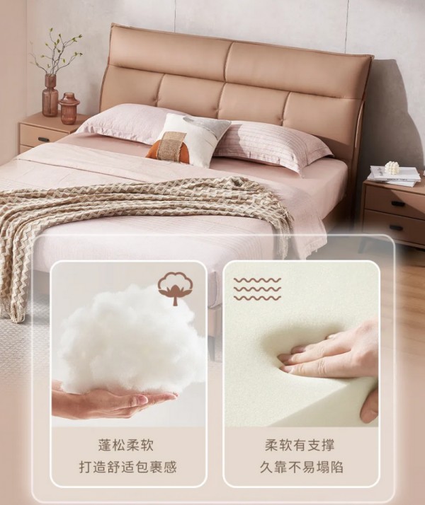 穗宝集团梵洛贝在材质选择上同样秉持严苛标准,力求兼顾舒适触感与长久耐用。外层选用头层黄牛皮胚料,优选疤痕少、皮质紧实的优质皮张,最大程度还原头层牛皮的天然肌理,让床体外观立体饱满,触感细腻温润。内层创新填充7孔纤维棉与高密度海绵组合,两种材质的精妙融合,让靠包兼具饱满蓬松的触感与持久回弹的特性,即便长期倚靠也不易变形塌陷,完美平衡实用性与舒适感。