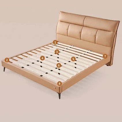在床架上,穗宝集团蕾莱亚选用进口松木打造,从源头杜绝甲醛隐患,既符合严苛的环保标准,也为居家使用筑牢安全防线。床架还采用加固加厚工艺处理,不仅具备出色的耐磨防腐性能,延长床架使用寿命,更拥有强劲的承重能力,稳固性无可挑剔。在排骨架上也作出了全面升级,优质板材搭配强化工艺,大幅提升整体稳固性,可均匀分散床面受力,减少睡眠时的床体晃动,贴心守护浅眠人群。床体还创新采用科学8脚支撑结构,支撑点布局精准,进一步强化稳定性,让床面受力均匀覆盖,从根源规避局部承压过大引发的异响与变形问题,全方位保障整夜安稳好眠。