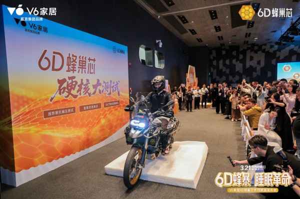 这是V6家居“6D蜂巢睡眠革命”新品发布会的现场。从去年的坦克碾压到今年的升级,V6用一年比一年“狠”的极限测试,将床垫材料科技从幕后推向台前。在这场持续三个小时的发布会上,睡眠专家、研发负责人、产品操盘手轮番登台,共同揭开了6D蜂巢芯的技术密码,也勾勒出V6家居战略升级的清晰路径。
