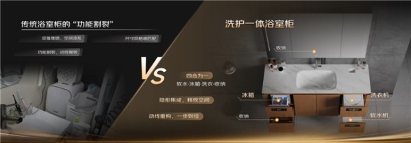 全面优化厨房空间的京东智能净水水槽,一改传统水槽与净水设备脱节、厨下拥挤、易漏水等弊端,通过专利一体化结构将水槽与净水器合二为一,厨下收纳空间翻倍,上下水管路合并实现一次安装,从根源杜绝漏水隐患。将软水机、美容冰箱、内衣洗衣机与浴室柜四合一的京东洗护一体浴室柜,通过隐形一体化设计,释放了原本被繁杂设备堆砌的空间。从此洗脸、护肤、洗内衣可以在一个点位完成,美容冰箱就近存放面膜,软水机让洗护体验升级,所有管线隐藏于柜内,视觉清爽整洁。
