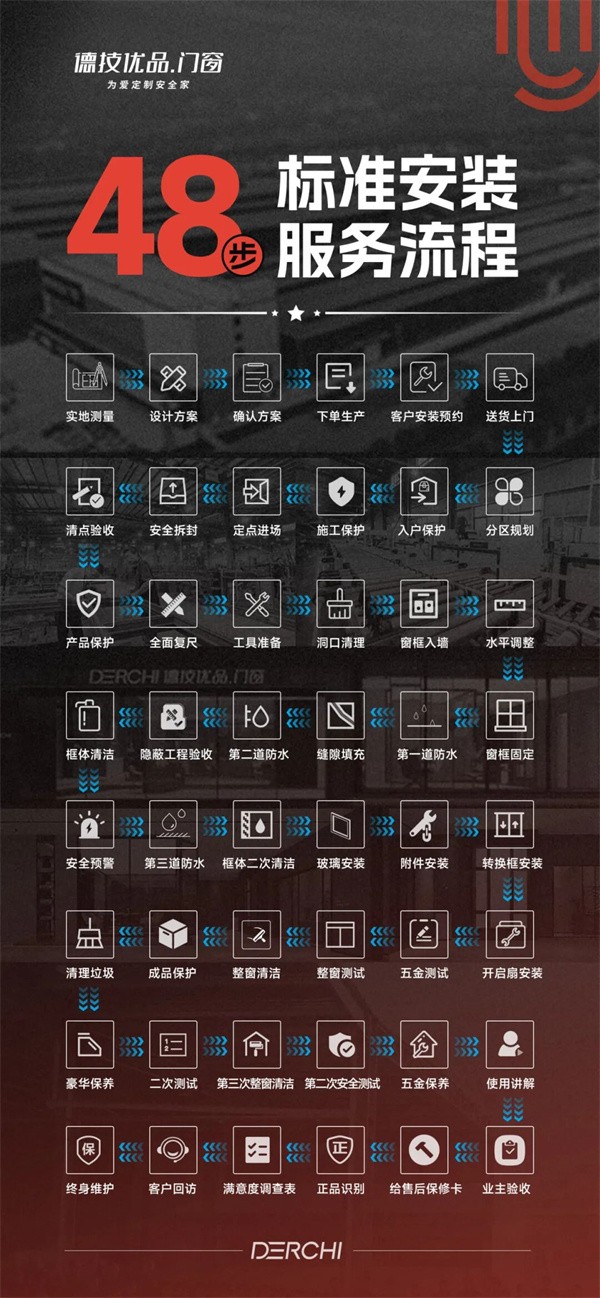 一直以来,德技优品门窗始终秉持“为爱定制安全家”的品牌核心理念,将“品质为基、服务至上”融入品牌发展血脉,深耕安全系统门窗领域多年,构建起集研发、生产、销售、安装、售后于一体的全产业链服务体系,用专业、细致、贴心的服务,守护千万家庭的安居梦想。