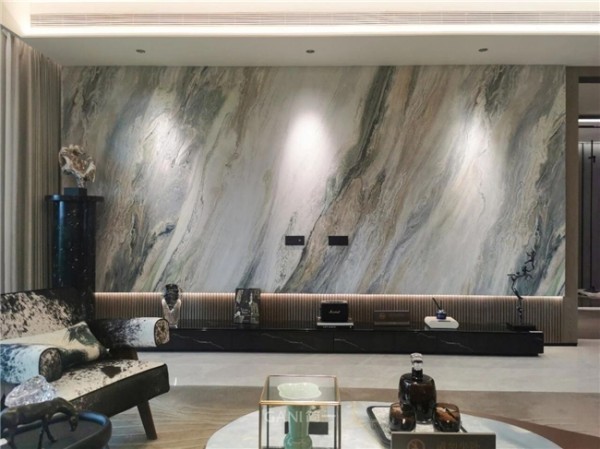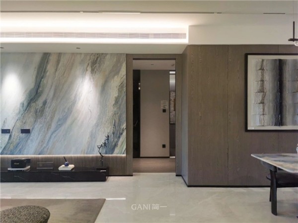 进入客厅,目光随即被整面的电视背景墙所吸引。简一碧海伽蓝的青调蓝纹自然的流淌,宛若无尽大海之上的浪花,随性洒脱。无限连纹配合密缝效果还原大自然精髓,置身其中可感受天然之美。