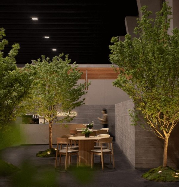 远观HC28 maison展位,像几组被安置在展馆内的生活街区。不同体量的空间彼此独立,又通过动线自然连接——既有完整封闭的“家”,也有向外开放的HC28 Café,使整个展位呈现出一种介于居住与公共生活之间的城市片段。