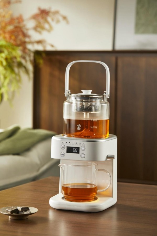 更值得一提的是,可蒸茶可煮茶,内置六种模式(含洗茶模式),实现一茶一温,不同茶种对应专属喷淋时间,花茶、原叶茶均可一壶满足。蒸茶模式专攻老茶、黑茶、乌龙茶,避开直接水煮的苦涩,充分激发茶叶香醇滋味;熬煮模式取下茶漏即可一键切换,一秒变身养生壶,适宜四季熬煮养生食材,默认慢火熬煮半小时,还可根据食材和口味调整时间,随按随停。全功率加热煮沸后,自动切换变频慢煮,既能有效防止沸腾溢出,又能以温和火力守住食材本味,避免久煮失香,不用守在旁边看管,办公间隙、居家休息,按下按键就能忙自己的事,到点就能喝到温厚好茶。