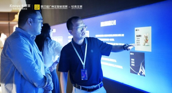 这次展会的主题很有喻义,叫“定制+好房子,共创美好生活”,这个主题和我们公司的发展定位不谋而合,“好房子”的概念是国家提出来的,但要实现好房子、好生活的目标离不开装修,也离不开定制产品,所以我们公司提出的战略是“基于定制,拥抱整装”,给定制的门店插上整装的翅膀,这个是我们发展的方向,所以我们卡诺亚公司顺势推出“居魔方整装”品牌,帮大家在整装这条路上走得更远、飞得更高,让大家的整装生意做得更专业、更规范、更简单,最终实现“全案设计、全案交付、全程无忧”的目标,这也是我们想传递的整装新模式的核心理念。而在定制产品上,我们的方向还是高端定制,今年也推出了符合市场潮流的几十款同步压纹及油漆木皮产品,丰富我们的产品矩阵。这次卡诺亚展馆就有高端木皮新品的现场展示,欢迎大家来看看、来品鉴!