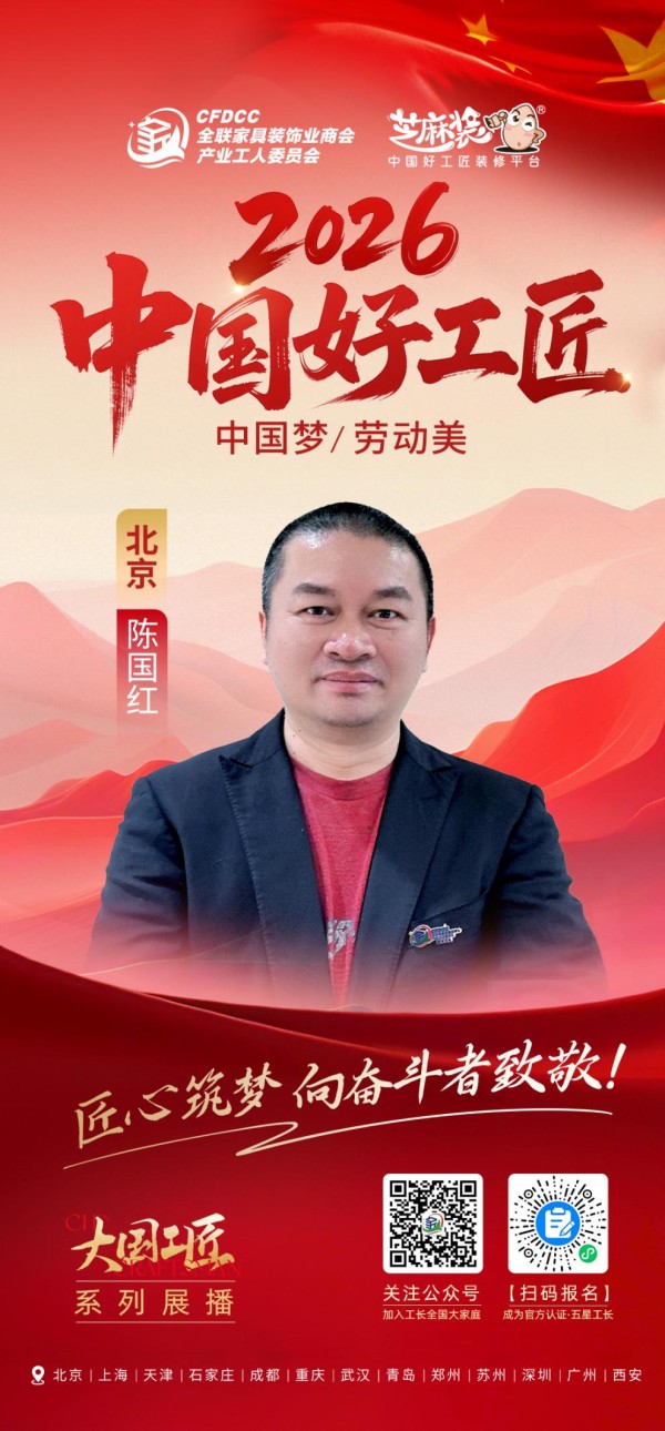 从跨界入局的“门外汉”到深耕精工的“手艺人”,陈国红二十余载的坚守,始终围绕着“匠心”二字。他以真诚为帆,以精工为桨,在规范行业工艺、传承工匠技艺的道路上躬身前行,不仅为万千家庭筑造了温馨居所,更以新时代工匠的担当,诠释着“中国好工匠”的深刻内涵。在他的身上,我们看到了平凡工匠的不凡坚守,也看到了家装行业高质量发展的坚实力量。