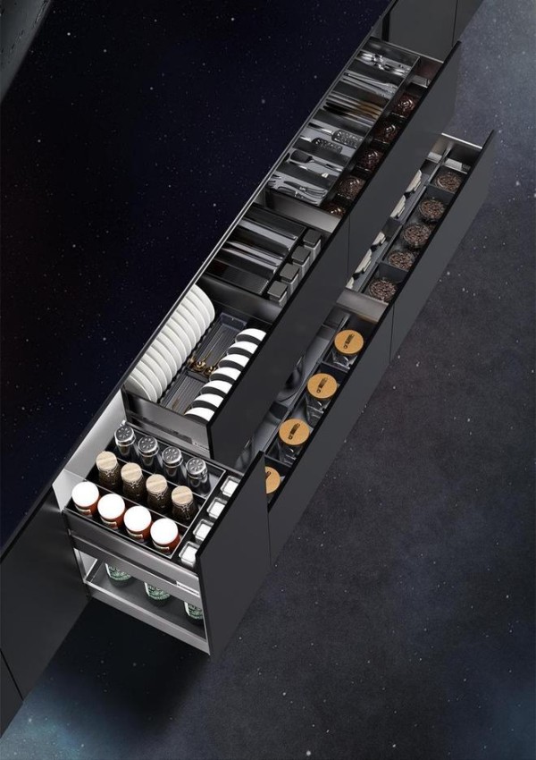 产品介绍:设计理念:当下厨房收纳普遍面临柜内杂乱无章、物品分类模糊、拿取翻找繁琐的痛点,台面堆物、深柜闲置、小件零散等问题,让厨房空间利用率低且操作动线受阻。月影系列以「精工月融 创新之影」为核心,直击收纳痛点,通过科学的分区设计与人性化结构,实现厨房物品的精准分类、有序归置,告别杂乱,打造视觉整洁、拿取便捷的厨房收纳体验,让方寸厨房兼具实用性与美学感,以设计重构厨房收纳新秩序。