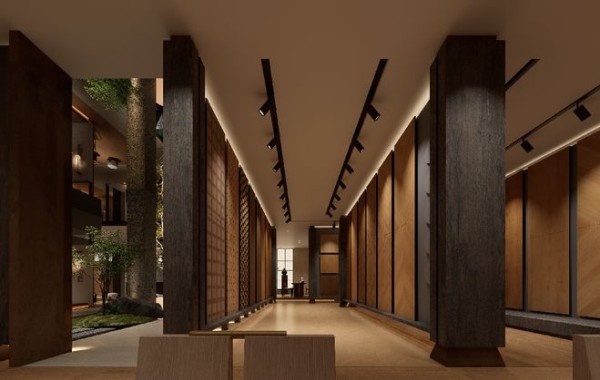 通过光影变化、空间层次的营造,让展厅既有木的温润柔和,又有建筑新材料的挺括质感,实现自然肌理与现代美学的平衡共生。