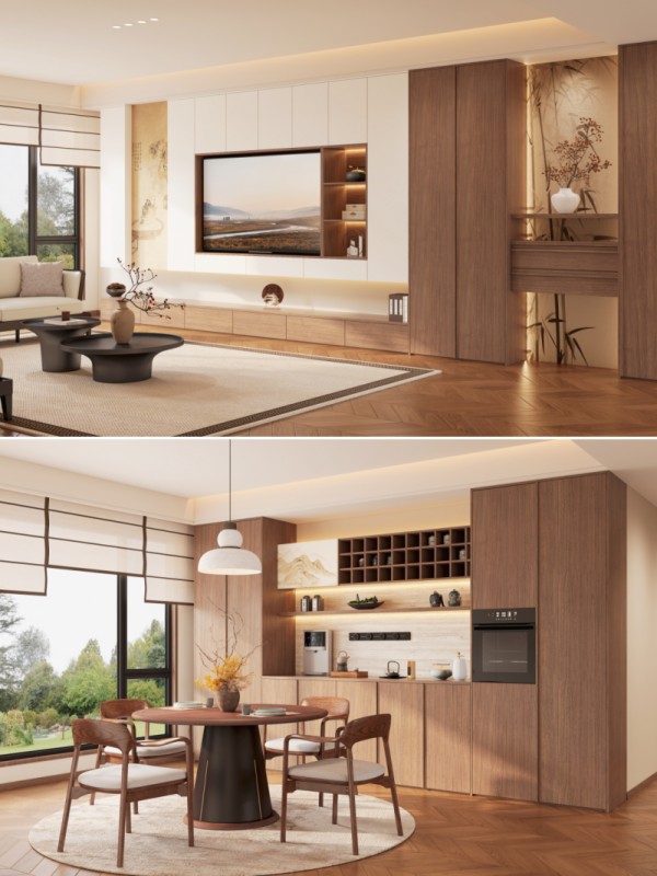 全友家居丨4种原木奶油风设计,宅家幸福感拉满!双友智能门墙柜一体化|装出高级感,省心更省力