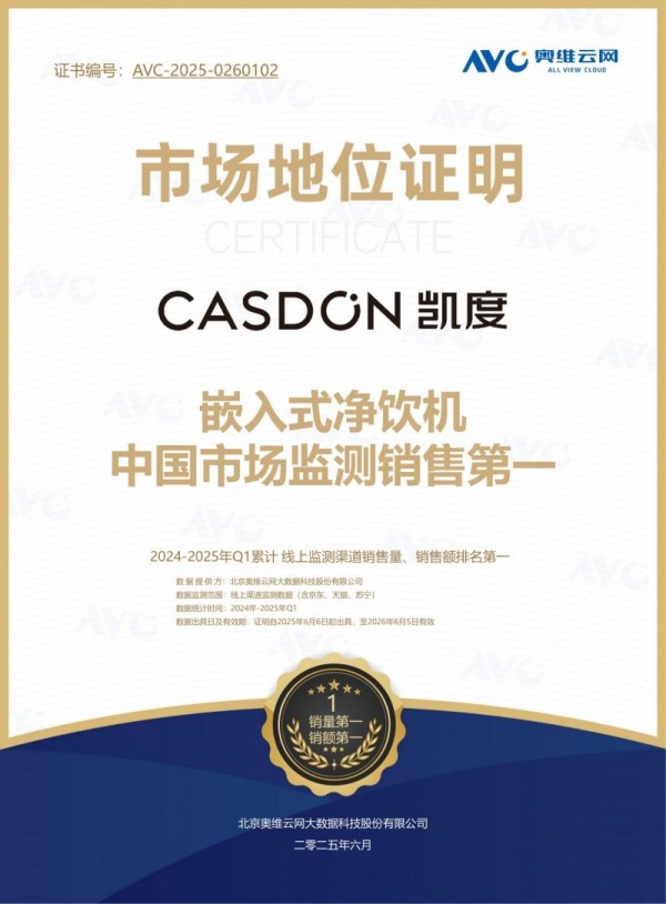 凯度在嵌入式家电领域深耕多年,凭借对市场的精准把握与技术创新,迅速成为行业领军者,旗下嵌入式直饮机常年稳居销量领先。品牌始终坚持 “高端品质、用户至上” 的理念,产品通过TÜV 南德权威认证、母婴级认证,细菌去除率 99.999%,从技术研发到生产制造,从品控检测到售后服务,全链条严格把控,为消费者提供安全、可靠、耐用的净水产品,是家装市场公认的净水专家。