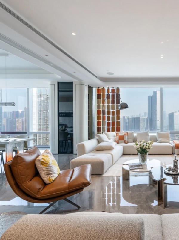 深圳220㎡云端大宅:萨米特密缝岩板梵高灰,打造轻奢大平层