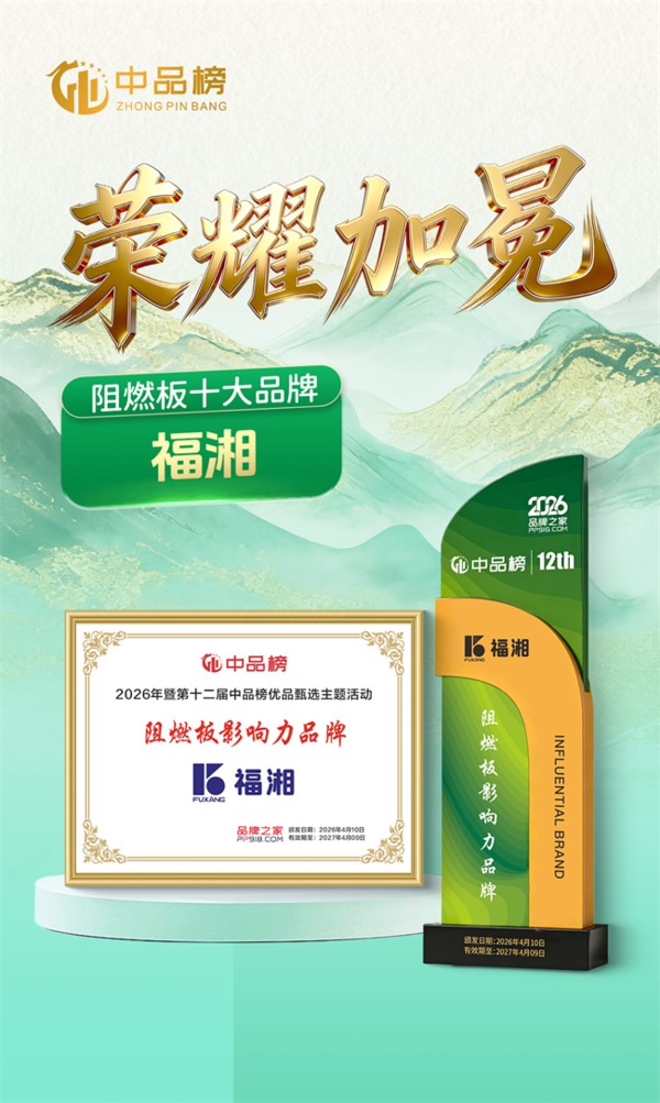 网址:双奖加冕|福湘板材荣膺2026年“板材十大品牌”“阻燃板十大品牌” https://www.yijiajiaju.cn/news/view/32717