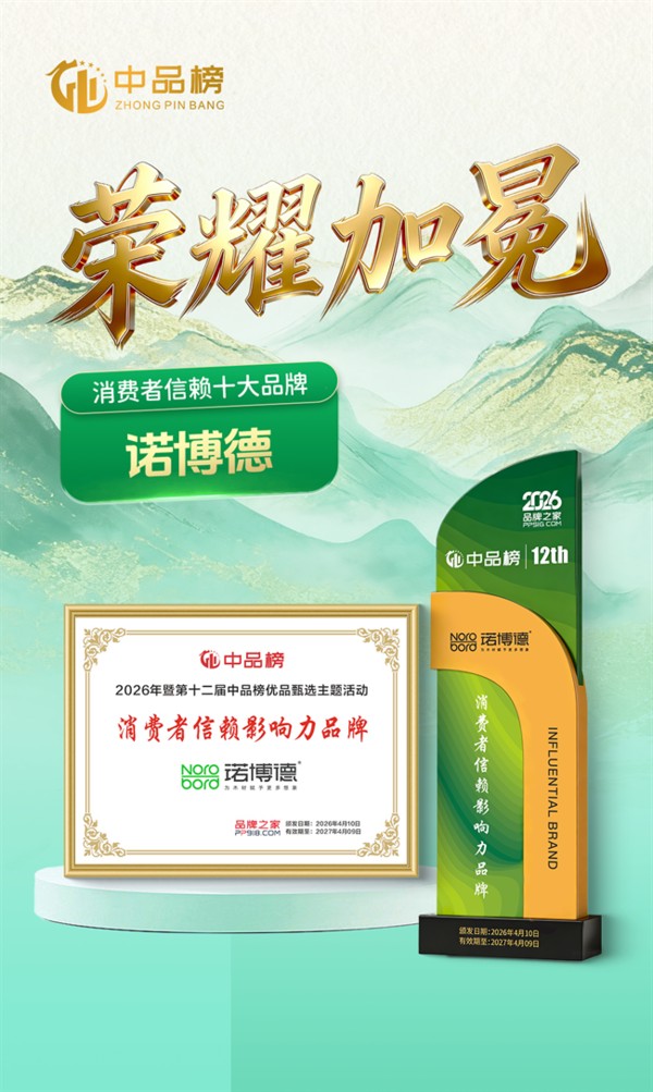 实力出圈!诺博德拿下 2026 中品榜消费者信赖十大品牌