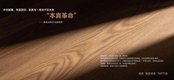 在于清亮看来,航美并非试图“颠覆”什么,而是想让实木回归它本该有的样子。“世间万物,终将回归本质,家亦如是。”他坦言,实木用油漆换取所谓的“耐用”,也曾忧心岁月的痕迹——开裂与变形会惊扰这份美好。“在健康、美感与实用之间,家,为何必须做出选择?航美的故事,就始于对这个选择的拒绝。”