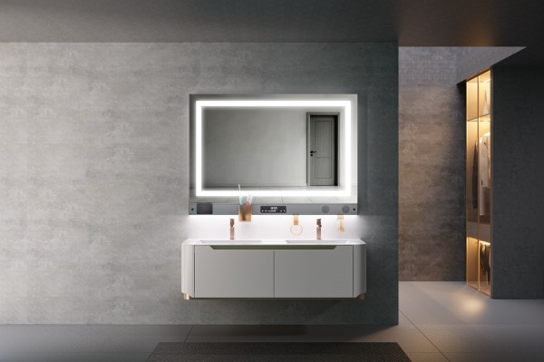 作为安装于镜面下方的“智能中枢”,卫浴镜灯多功能控制模块将智能调光、一键除雾、人体感应、蓝牙音响、时钟显示、双路取电、收纳扩展、健康模块八大功能融为一体,并支持功能自由组合,灵活尺寸、简约设计可适配不同镜面规格与空间风格。让普通镜子从“被动反射”进化为“主动服务”,从“照明配件”升级为“智慧中枢”,推动卫浴空间从“功能时代”迈向“智能时代”。