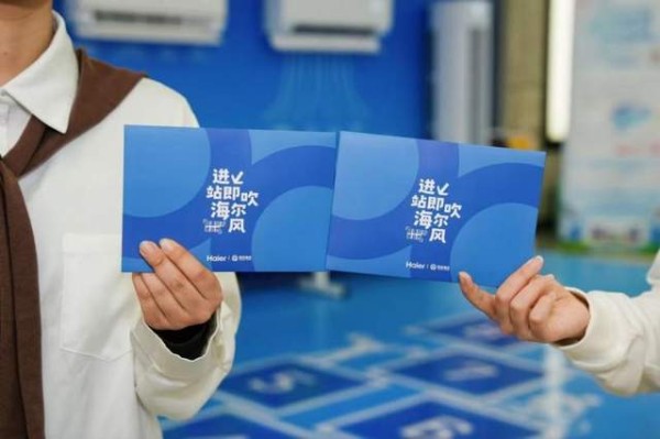 " 进站就收到一系列礼品,这也太贴心了!" 在青岛北站等地铁枢纽站点,不少参赛选手刚进站就收到了海尔暖通商用精心准备的赛事礼包,里面不仅有补给用品,更有青岛地铁 × 海尔大暖通联名纪念票卡,成为本次青马的一大亮点。票卡上印有 " 海尔暖通商用空调覆盖全国 39 座城、256 条地铁线路 "" 连续 8 年第一 " 等信息,在传递赛事温度的同时,也展现出海尔暖通商用在轨交领域的领先实力。