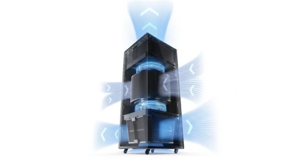 空气在净化器内部的流动路径是完整且连续的:从进风口进入,经叶轮加速、导流组件整流,穿过滤芯完成吸附,再由风道送出。每一步都会影响气流均匀性、系统风阻、能耗与噪音表现,各环节高度耦合,任何一处设计疏漏,都会拖累整个系统的长效性能。提升活性炭装填量、拉高峰值CADR,是多数品牌均可实现的基础操作;但在高装填量带来的高风阻条件下,同时实现均匀气流、稳定风量与全档位低噪,才是对技术深度的真正考验。