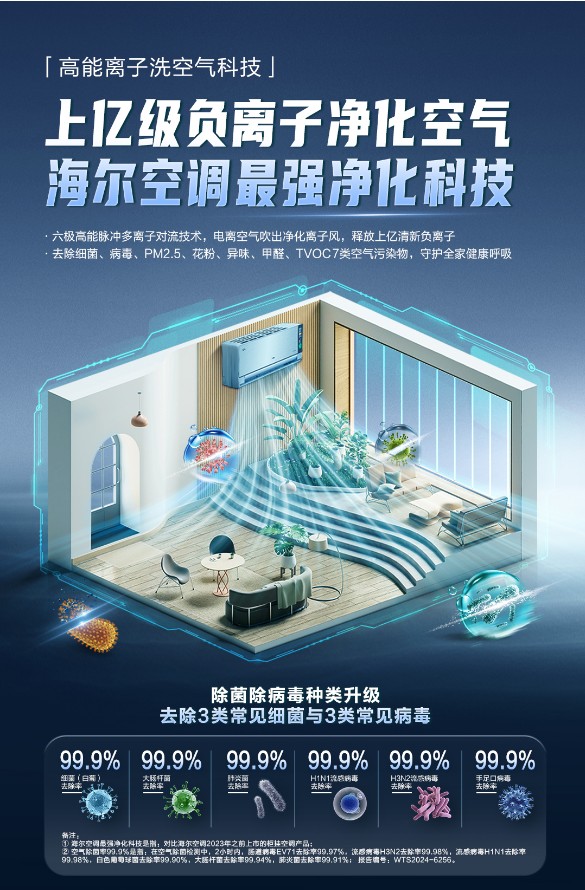 海尔空调在科技创新的基础上,不断迭代升级焕新多元化的空气场景方案,引领空调行业迈向深度智能化,为用户带来更健康、更智慧的生活体验。