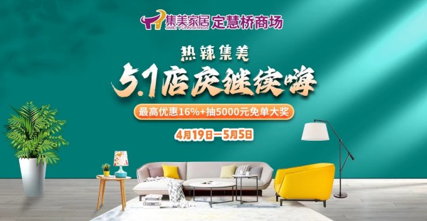 集美家居定慧桥商场五一店庆热辣来袭,为品质消费注入强劲活力!集美家居五一活动火爆开启,最高优惠16%加抽免单大奖,引领家居消费新热潮